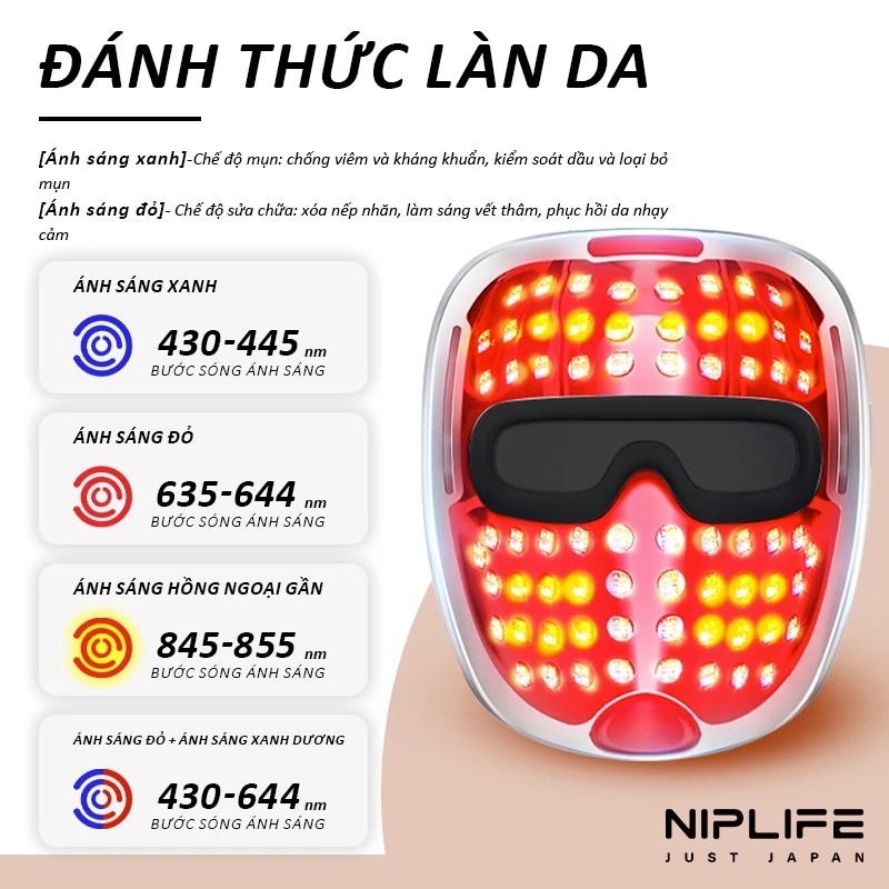 💡💡💡NIPLIFE EM-01 ReGlow có 3 chế độ chăm sóc da, mỗi chế độ có 2 hoặc 3 bước sóng lâm sàng để đạt được kết quả tốt hơn:
